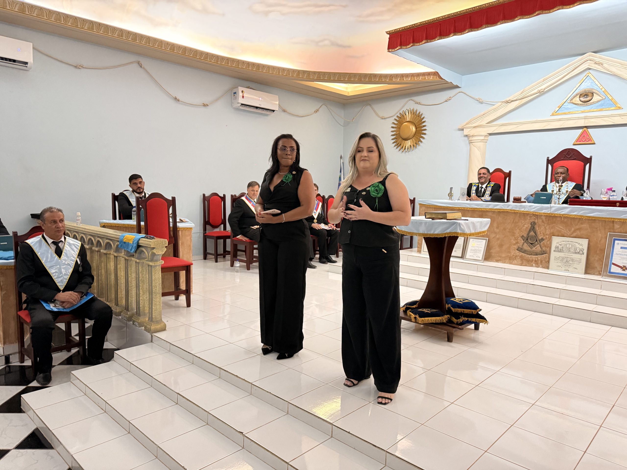 Após a sessão, as cunhadas e convidados participaram da parte pública, onde as novas cunhadas foram apresentadas à família maçônica que agora passam a integrar. A ocasião contou com a presença da cunhada Simone Costa, vice-presidente da FRAFEM-GO, acompanhada das coordenadoras Marcele e Hilda, reforçando a integração das famílias na vida maçônica.