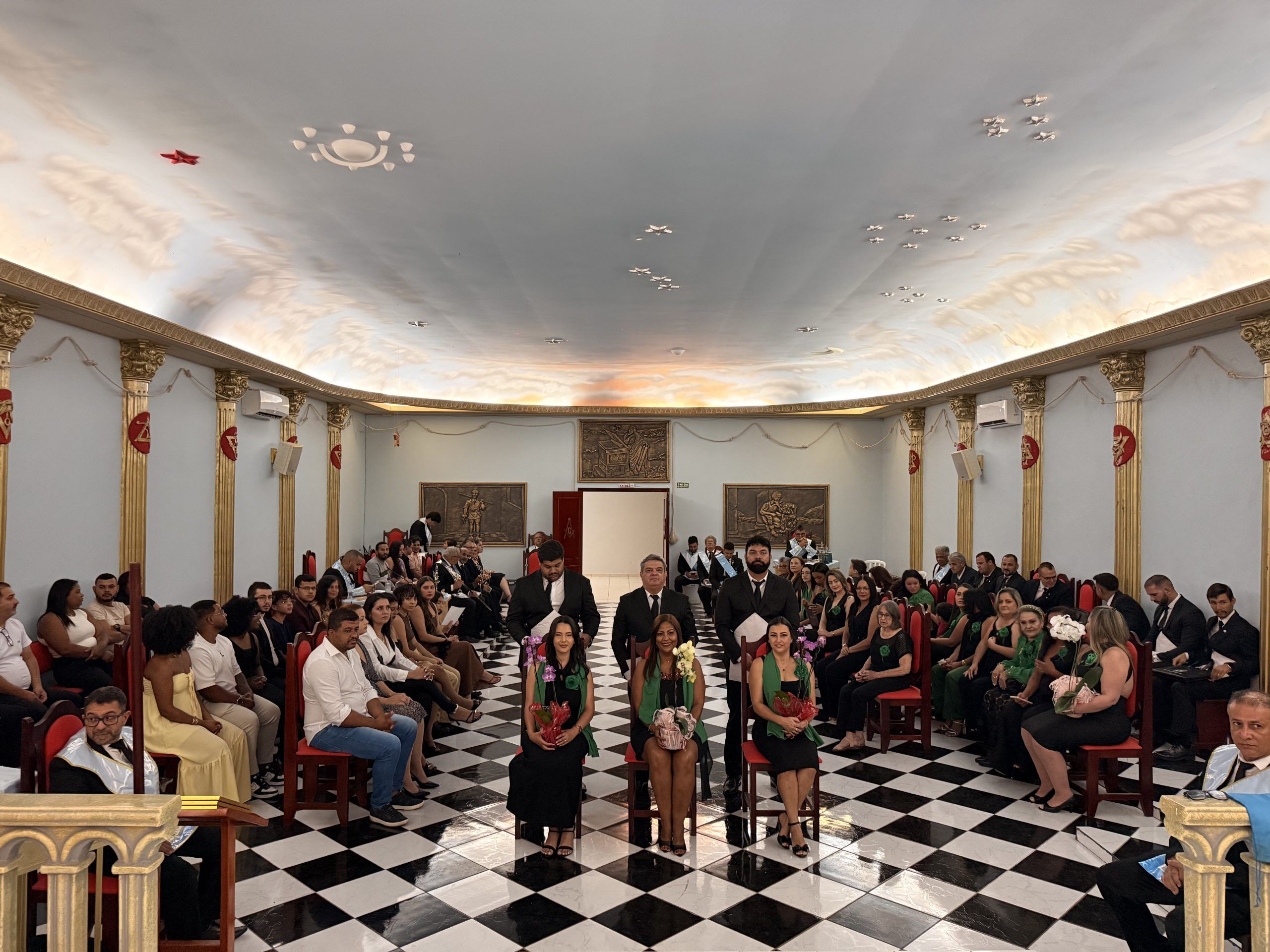 No sábado, 11/10/2025, a Loja Mensageiros da Arte Real nº 3.189, no Oriente de Águas Lindas de Goiás, realizou uma expressiva Sessão Magna de Iniciação, conduzida pelo seu Venerável Mestre, Irmão Marzone Batista de Sousa. Na ocasião, os profanos Daniel Pereira dos Santos, Paulo Ricardo Lucas de Sena e Edivan Procópio Leite foram recebidos como novos Irmãos na Ordem.